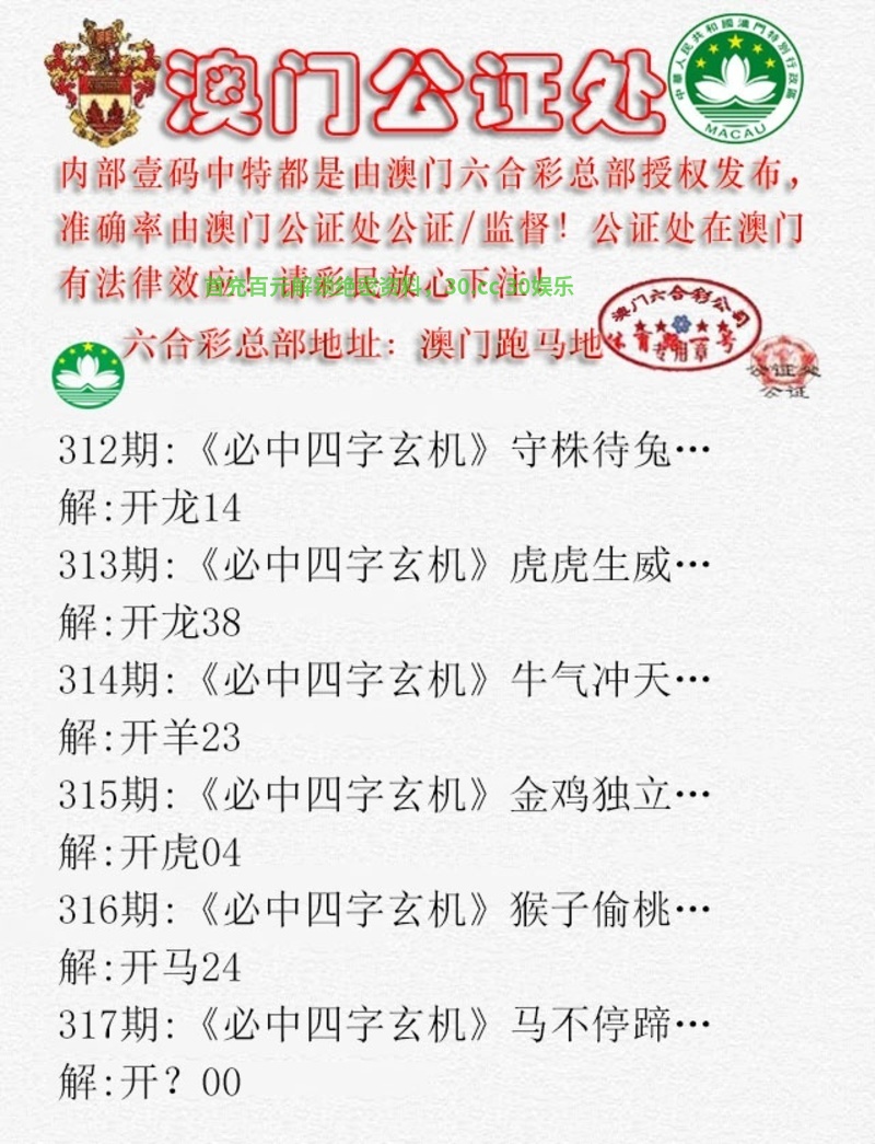 公证处四字玄机:第316期{开:马24中}