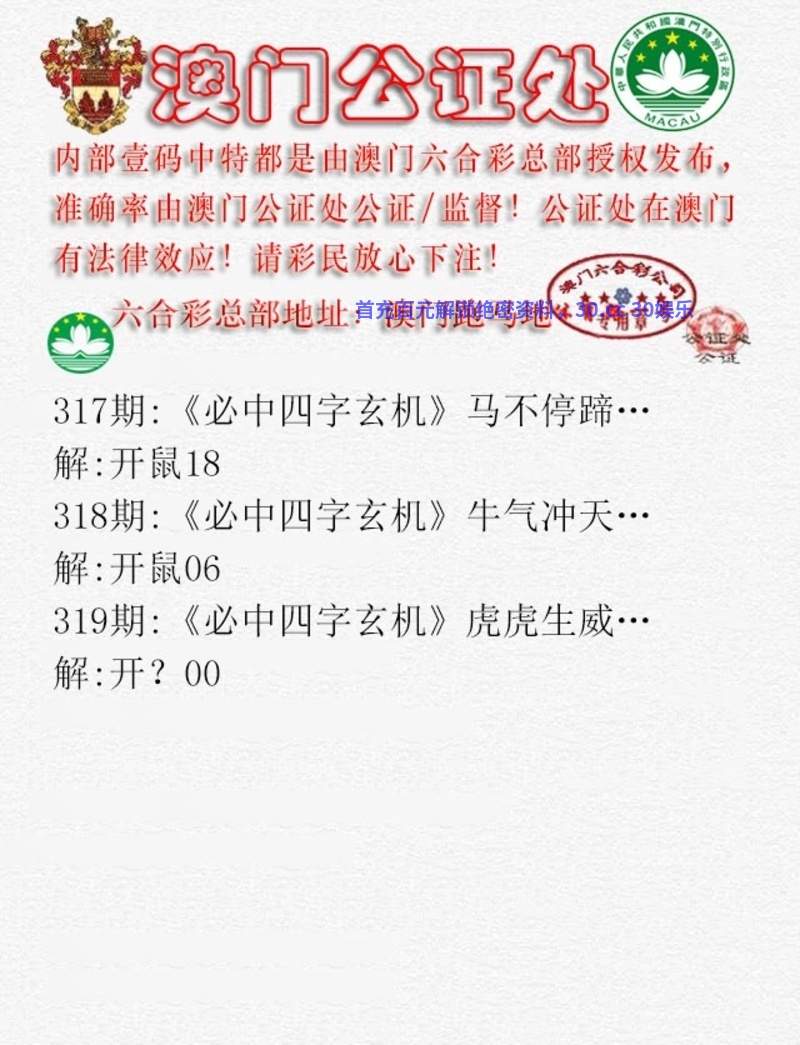 公证处四字玄机:第319期{开:鸡45中}