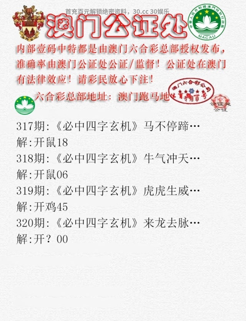 公证处四字玄机:第320期{开:虎28中}